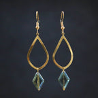 Beaded earrings made from glass beads, brass charms and zinc alloy ear wires. Hypo-allergenic ear wires.