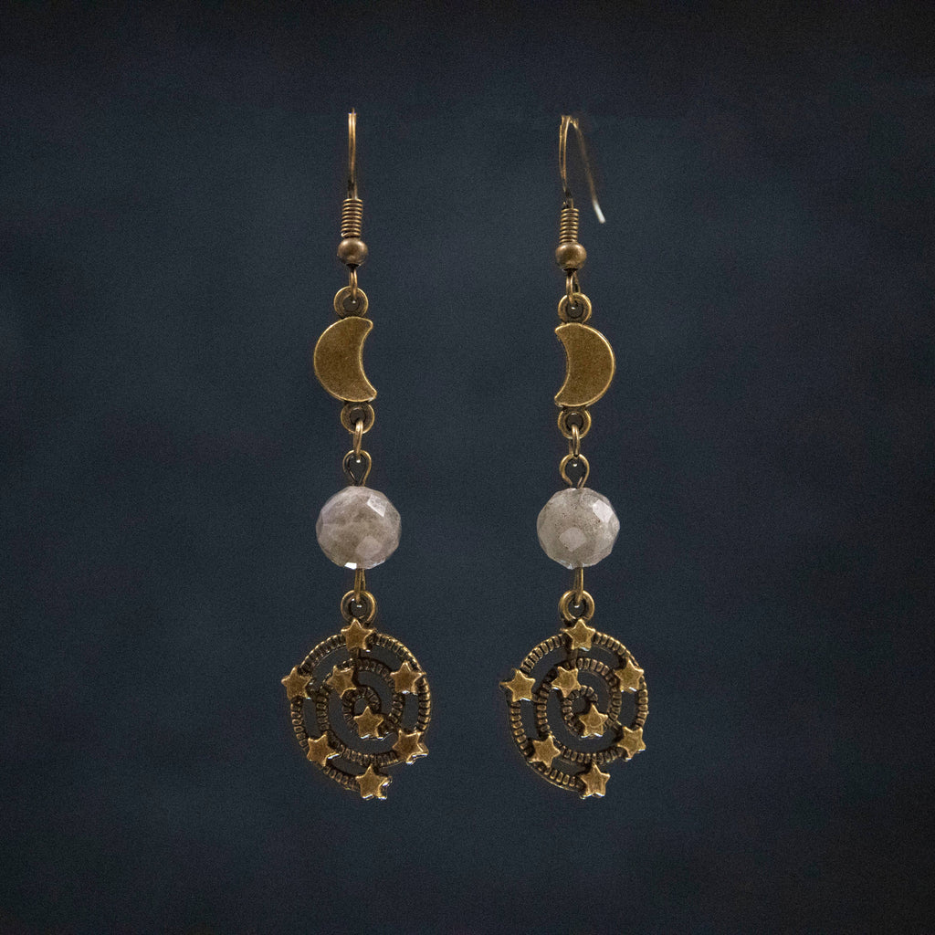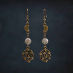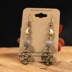 Beaded earrings made from glass beads, antique bronze charms and zinc alloy ear wires. Hypo-allergenic ear wires.