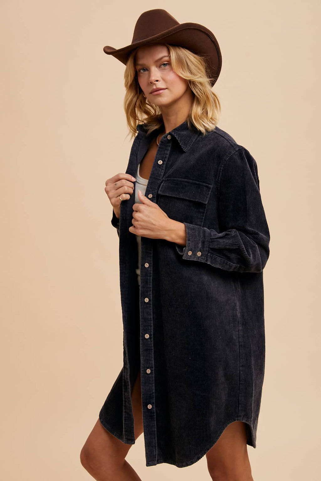 Elevate your outerwear game with our Garment Washed Corduroy Duster Jacket — a perfect blend of vintage-inspired softness and modern western cool. The garment-washed finish gives the rich corduroy fabric a lived-in, worn-in feel that’s effortlessly chic. With a relaxed, duster-length silhouette, this jacket layers beautifully over everything from casual tees to breezy dresses.